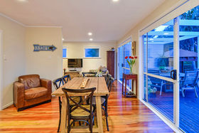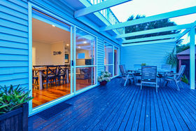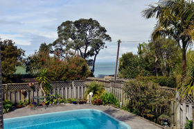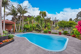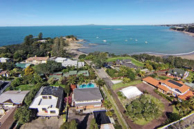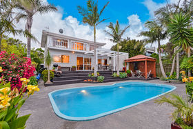 Walk past the boat & all the off‐street parking. Glance at the sleep‐out. (That's a plus!). The main house makes a bold statement. Brick & weatherboard. Trusty. Traditional. Be charmed by the sumptuous polished wooden floors that beckon you through to the hub of the house. So warm & homely. It's an awe moment. NZ's Little Hawaii? A sunny calm picture perfect vista. Kitchen, dining & living area all leading outonto a deliciously large entertainers deck & solar‐heated pool. The Nikau palms stand guardian. Pina Colada anyone? As you place your glass on the gleaming granite benchtop in the new kitchen, your eyes are drawn to the beauty of the sea & the iconic cameo of Rangitoto Island. Any dolphins or whales to be seen today? Just the shimmering lights of passing cruise ships.