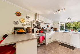 Be welcomed to a full-length covered patio to a lead-lighten front entrance. The modern kitchen has a peaceful outlook up to the TihiOTonga hills and two living areas all featuring high ceilings. Now add three generous sized bedrooms plus a fourth that is currently used for a craft room. There is a massive bathroom with a double spa bath and has a very private outlook.